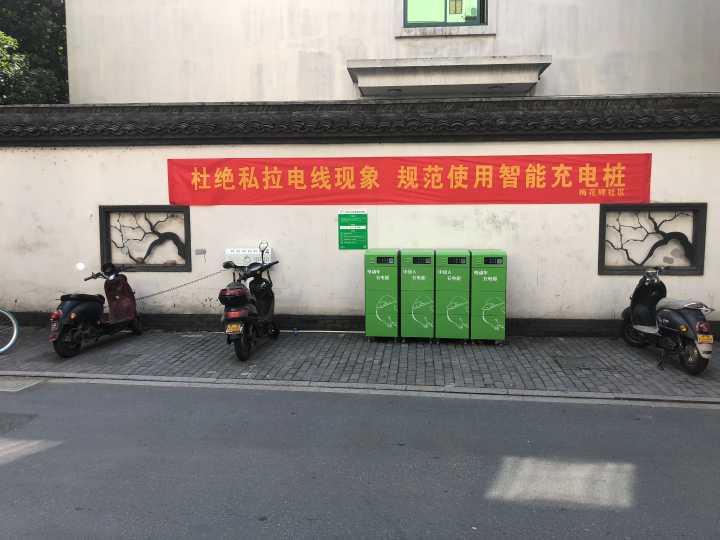 目前,梅花碑社区已经实现了“百米内就有充电桩”,除了集中停放点的智能充电桩外,还新装上了41台露天智能充电设备,包括具有防雨防雷、充满断电功能的充电桩和针对外卖、快递集中区设立的具有智能门锁功能的充电柜。这些充电桩都将定期进行维护保养,保障安全运行。
